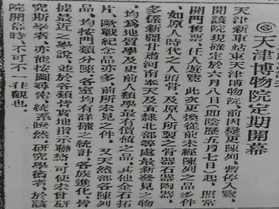 1924 年 6 月, 坐落在河北公园(今中山公园) 内的天津博物院举办的文物展览, 是天津文博界的一件大事, 对人们认识和提高文物保护意识, 起到了重要的作用。同时, 展览也丰富了天津市民的文化生活。 大公报对天津博物院开幕的报道 这次文物展览, 提前一...