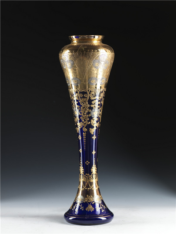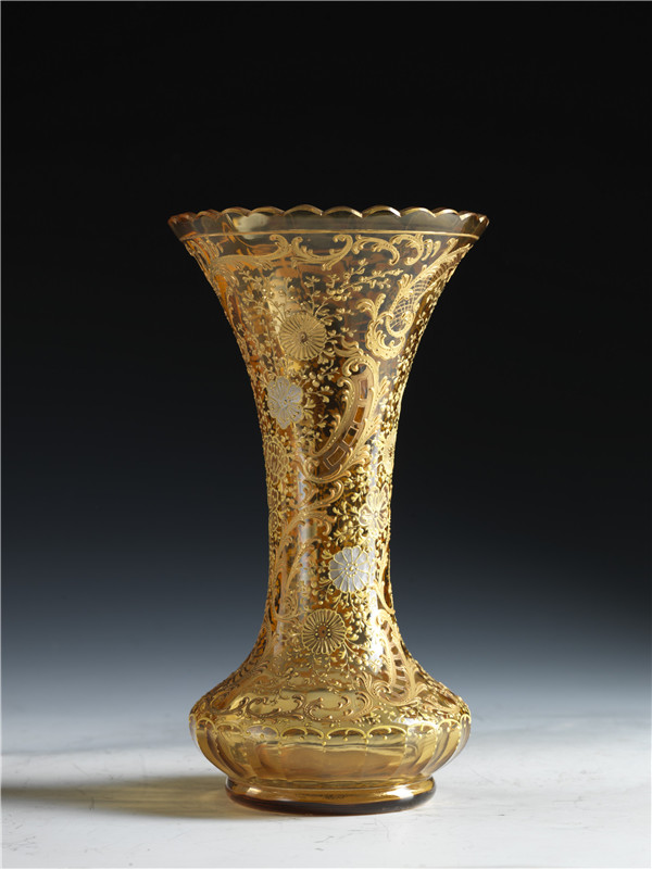 透明黄色镀金刻面玻璃画珐琅花卉纹瓶
