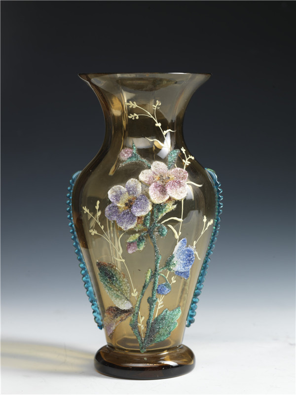 透明琥珀色玻璃画珐琅花卉纹瓶