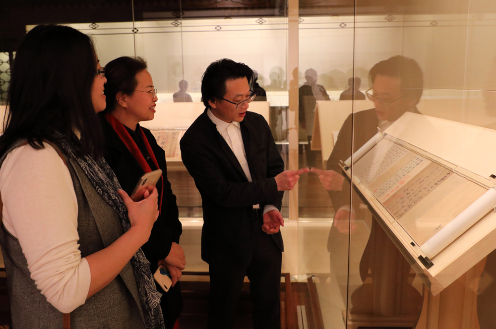 天津博物馆副馆长钱玲出席开幕典礼,并在新闻发布会致辞,她强调“这是一次非常重要的董其昌展览,全面、立体地展示董其昌书画艺术及源流。天津博物馆两件重要藏品唐摹王羲之《寒切帖卷》、及与董其昌同时的丁云鹏绘《云山图轴》的参展正体现这一特点。”