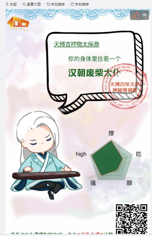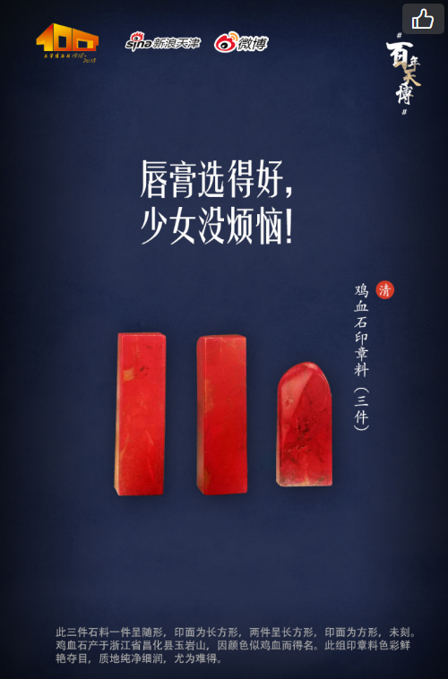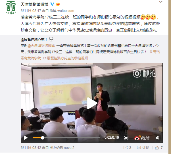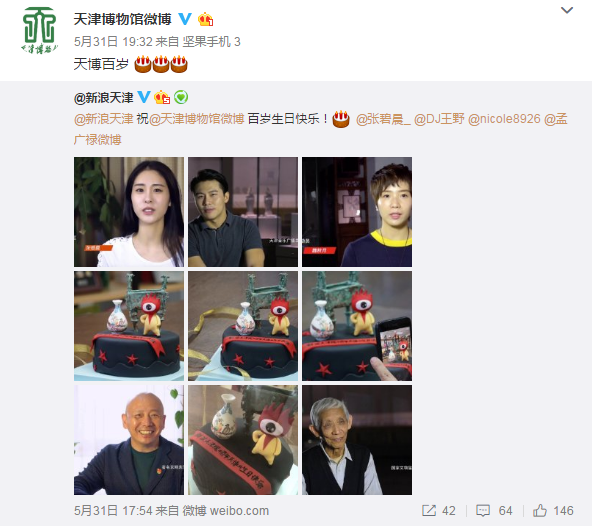 近几年,以微博、微信等为代表的新媒体发展迅猛,在博物馆形象塑造、品牌传播等方面都产生了意义深远的影响。2018年,我馆探索媒体宣传的新渠道,以微博为媒介,策划“百年天博”、“读城”等活动,通过发布创意文物海报、H5游戏、大V走进博物馆等方式,吸引更多观众关注博物馆,对提升我馆的品牌影响力发挥了重要作用。这些宣传活动中, 我馆信息阅读量近一亿次,并登上微博热搜榜第三名;天津博物馆官方微博账号也借此连续数周登上“博物馆类微博账号影响力榜”。得益于在新媒体领域的探索,天津博物馆荣获“2018中国自媒体创意营销大典金锋奖”、“第二届IAI国际旅游奖——媒介创意类金奖”、“微博2018读城最具人气博物馆奖”等三个奖项。