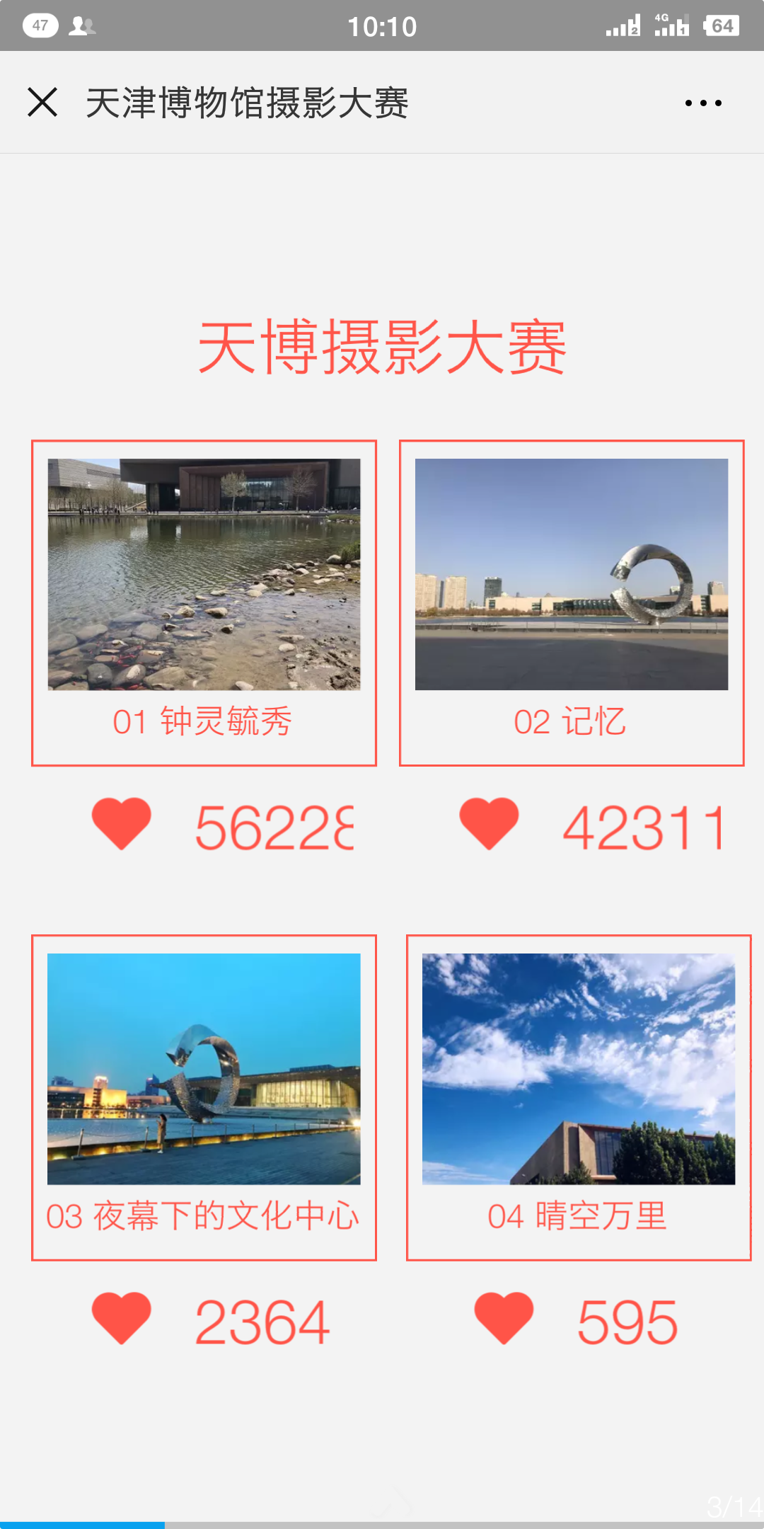 快乐工作是我们的信条,我们的职工不仅会工作,更会生活。年末,天津博物馆首届职工摄影大赛欢乐开赛,大家踊跃参与,用镜头展示我们的馆,体现出员工积极向上、爱馆敬业的的精神面貌。这一活动,还在社会产生很大影响,各界纷纷投票,目前排名第一的照片已经有5万6千多赞。评选活动结束后,这些参赛作品还将集中展出。