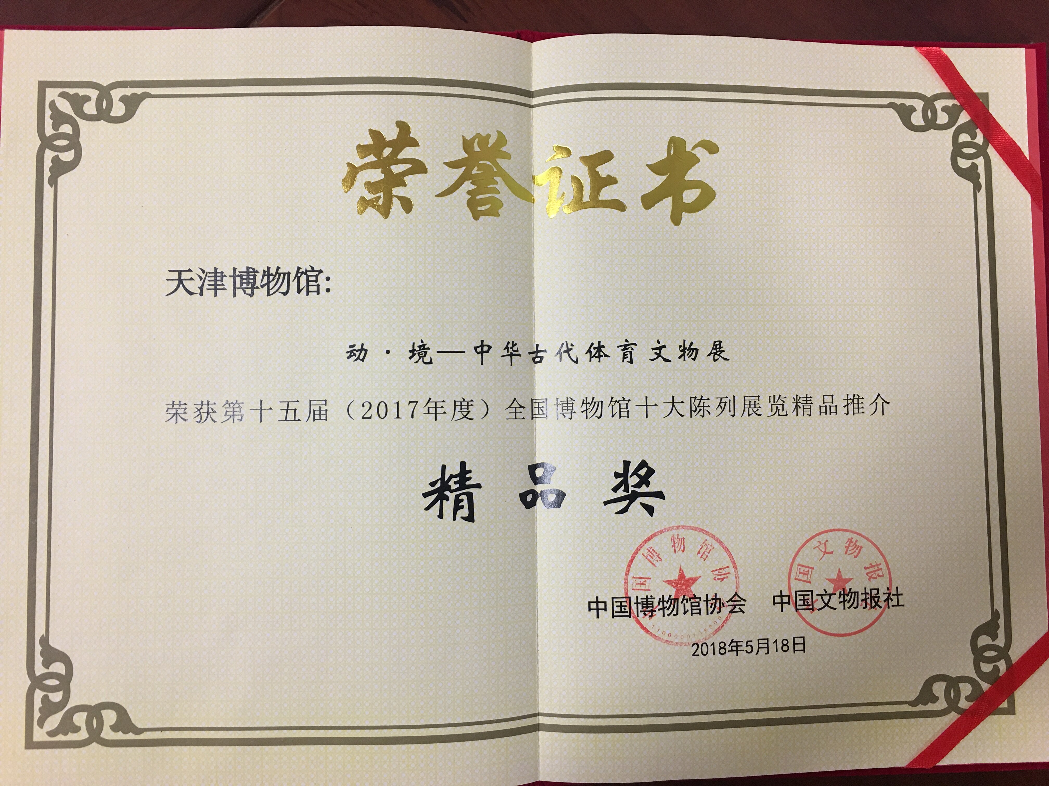 在引进高端展览的同时,我馆一直创新原创展览策展机制,在新机制推动下,紧紧围绕国家、天津市政府重大活动推出多个精品展览。例如,配合天津市政府举办“第十三届全运会”策划的“动·境——中华古代体育文物展”荣获2018年“第十五届全国博物馆十大陈列展览精品奖”。
