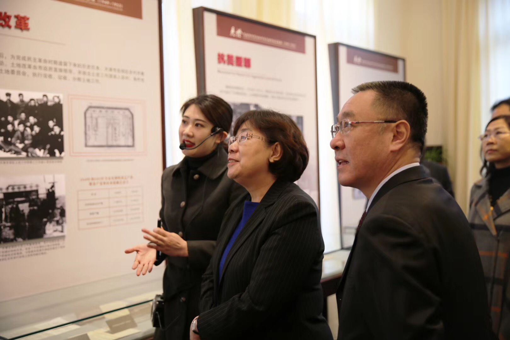 授牌仪式结束后,领导同志参观了《见证-天津市军管会和中共天津市委在张园(1949-1953)》展览。该展览由我馆协助策划,历时一年,通过大量历史照片和相关展品,突出了张园作为天津市委第一个公开的办公地址应有的历史地位,并以红色遗址特有的历史感召力鼓舞和动员全市人民继承革命传统,高举习近平新时代中国特色社会主义思想伟大旗帜,忠诚担当,创业竞进,抢抓机遇,砥砺前行,奋力谱写中华民族伟大复兴中国梦的天津篇章。参观结束后,领导同志对展览表示高度认可。