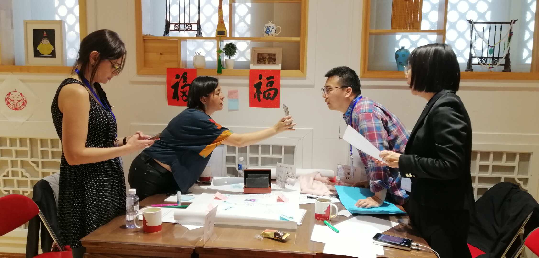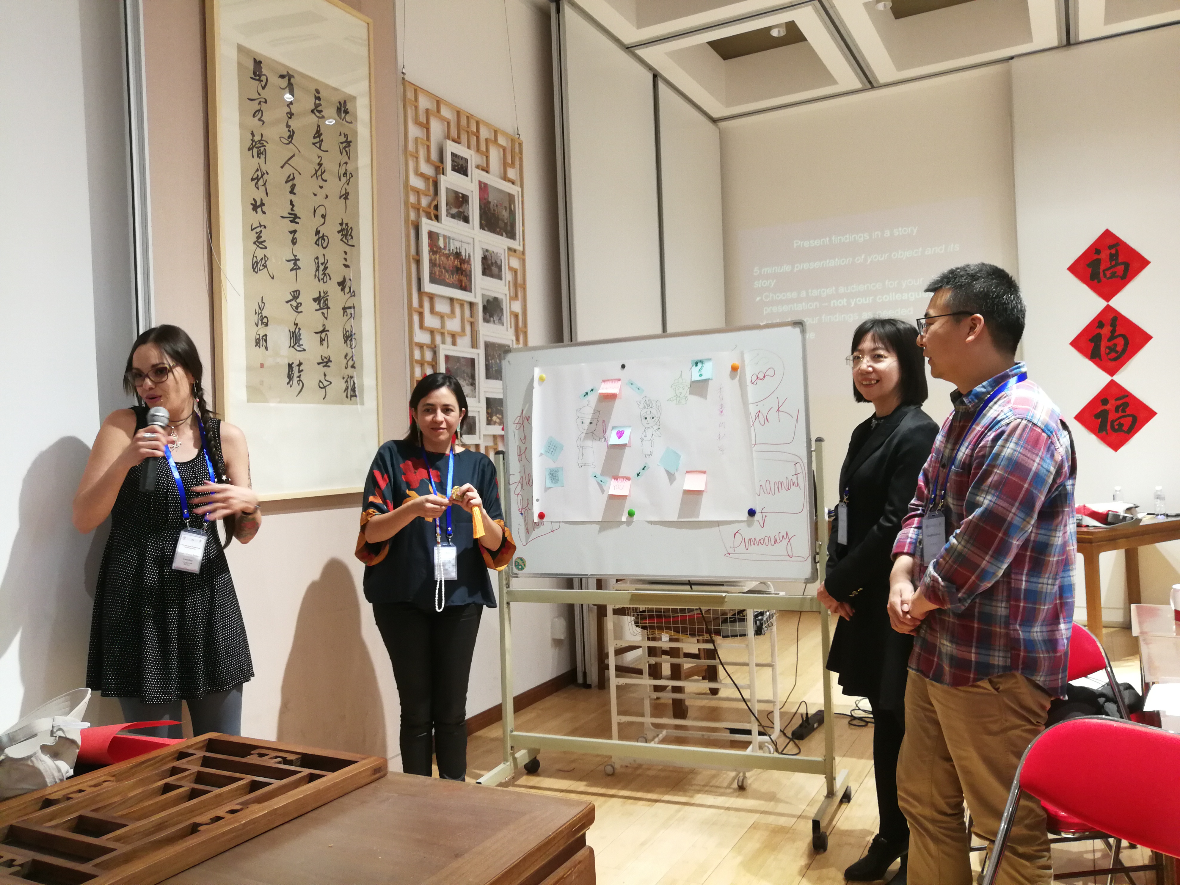 培训班还采取了分组讨论、经验分享、藏品阅读、协作策展览、小型研讨会、展示汇报等形式进行。每节课都采取不同的分组,使每位学员都能与其他各位学员获得沟通交流的机会。通过频繁的分组讨论,鼓励每位学员踊跃发言,交流分享各国各馆在藏品管理、藏品著录、藏品保管、收藏等方面的经验教训。“藏品阅读”作为培训班的经典课程之一,选用故宫文创或教育活动用品等作为“藏品”,让学员仔细观察这些“藏品”,记录尺寸、颜色、工艺等信息,并通过新颖的方式诠释“藏品”故事。协作策展由学员以组为单位从藏品保护角度出发,对展览设计中藏品使用进行风险评估,完成策展。小型研讨会环节,学员与四位外国专家依次交流,沟通探讨培训中的收获和疑惑、工作中的经验和难题。展示汇报环节由中外两位专家克劳德·福贝尔、果美侠讲解展示汇报的实用技巧,并以小组形式进行实践。