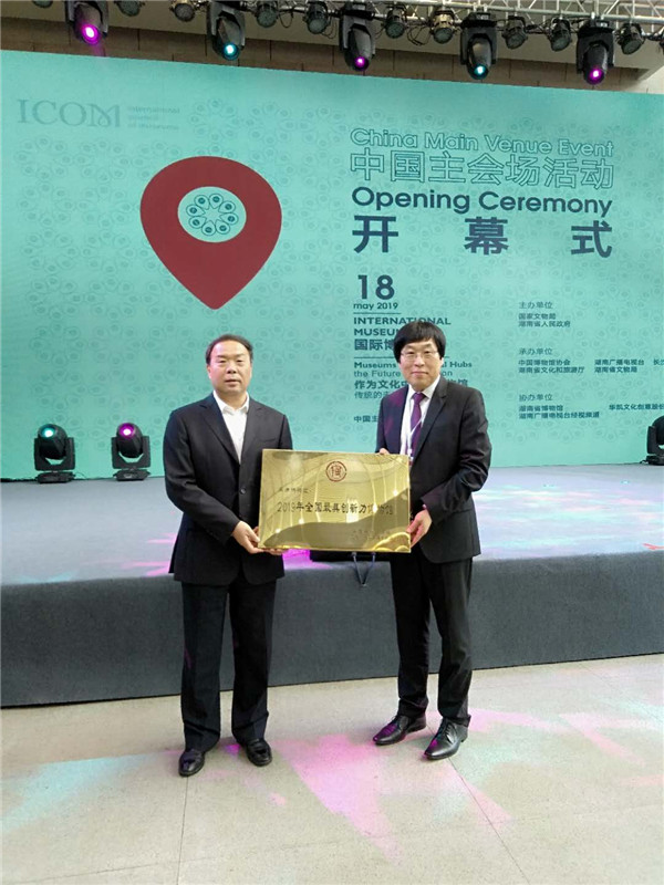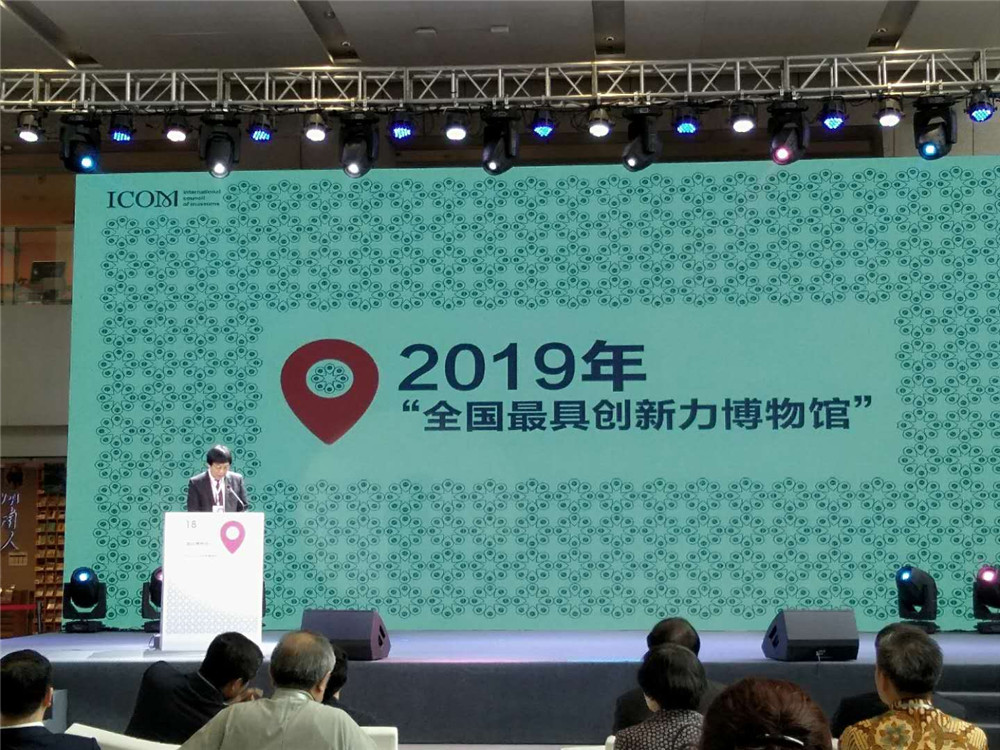 在上午的活动中,国际博物馆协会副主席、中国博物馆协会副理事长兼秘书长安来顺宣布了“2019年全国最具创新力博物馆”名单,天津博物馆作为省级综合类博物馆的代表,与中国丝绸博物馆、北京汽车博物馆共同获此殊荣。国家文物局副局长关强向天津博物馆党委书记、馆长陈卓颁发了“2019年全国最具创新力博物馆”奖牌。