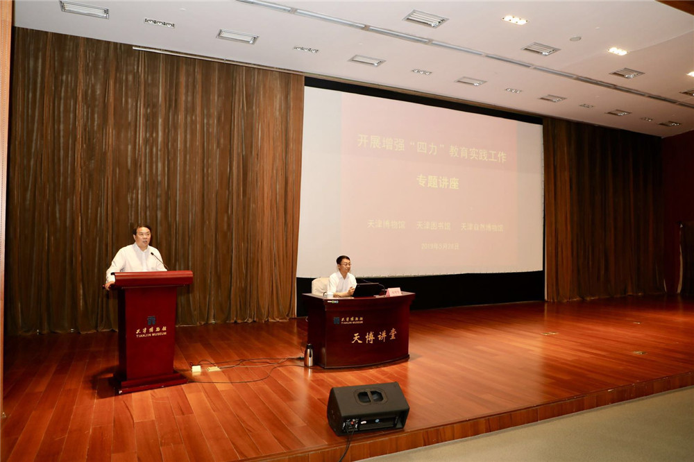5月28日,受天津博物馆党委邀请,天津市委党校副校长赵晓呼教授以《不忘初心 牢记使命 保持中国共产党的伟大精神》为题,为天津博物馆党员干部进行了一场增强“四力”教育实践专题辅导。天津博物馆党委书记、馆长陈卓同志主持,全馆党员干部200余人到场聆听学习。天津自然博物馆、天津图书馆的党员干部也一同参加了此次学习。