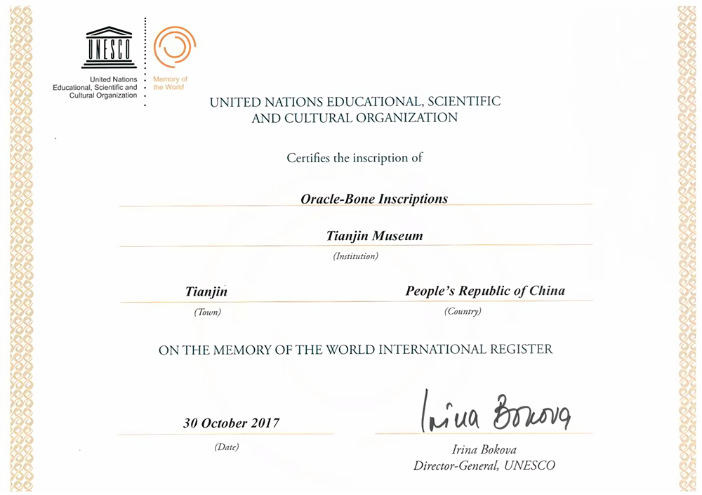 目前,甲骨学已经发展成一门成熟的、国际性的显学。2017年,包括天津博物馆在内的国内11家甲骨收藏单位联合申遗成功,甲骨文被联合国教科文组织列入“世界记忆遗产名录”。甲骨文作为中国优秀传统文化的代表,已获得了全世界的认可。