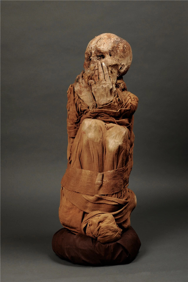 安第斯地区的木乃伊被包裹的姿势与其他地区不太相同,此次展示的木乃伊身体姿势呈蜷缩状。