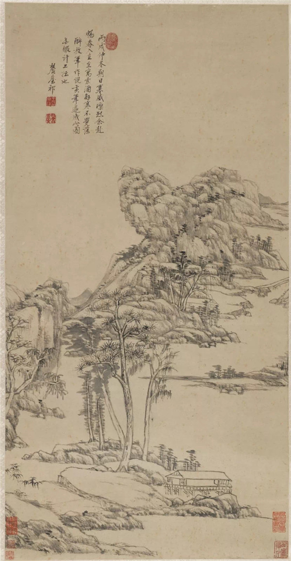 款署:“丙戌仲冬朔日寒威凛烈,余赴畅春入直,至寓索酒解寒,不觉薄醉放笔作倪黄笔,遂成此图,无暇计工拙也。麓台祁。”