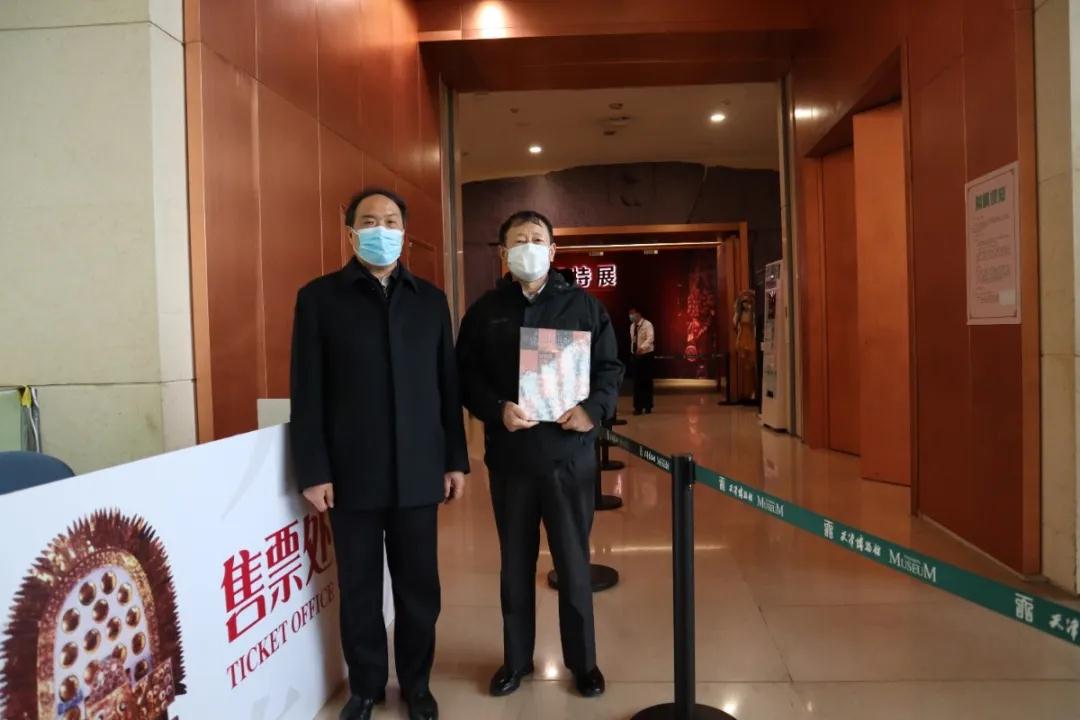 26号早上不到9点,天津博物馆门口已经有观众在排队等候。大家井然有序,保持着一米的安全距离。天津博物馆党委书记、馆长陈卓带领馆党委成员已经在入口处等待观众的到来。
