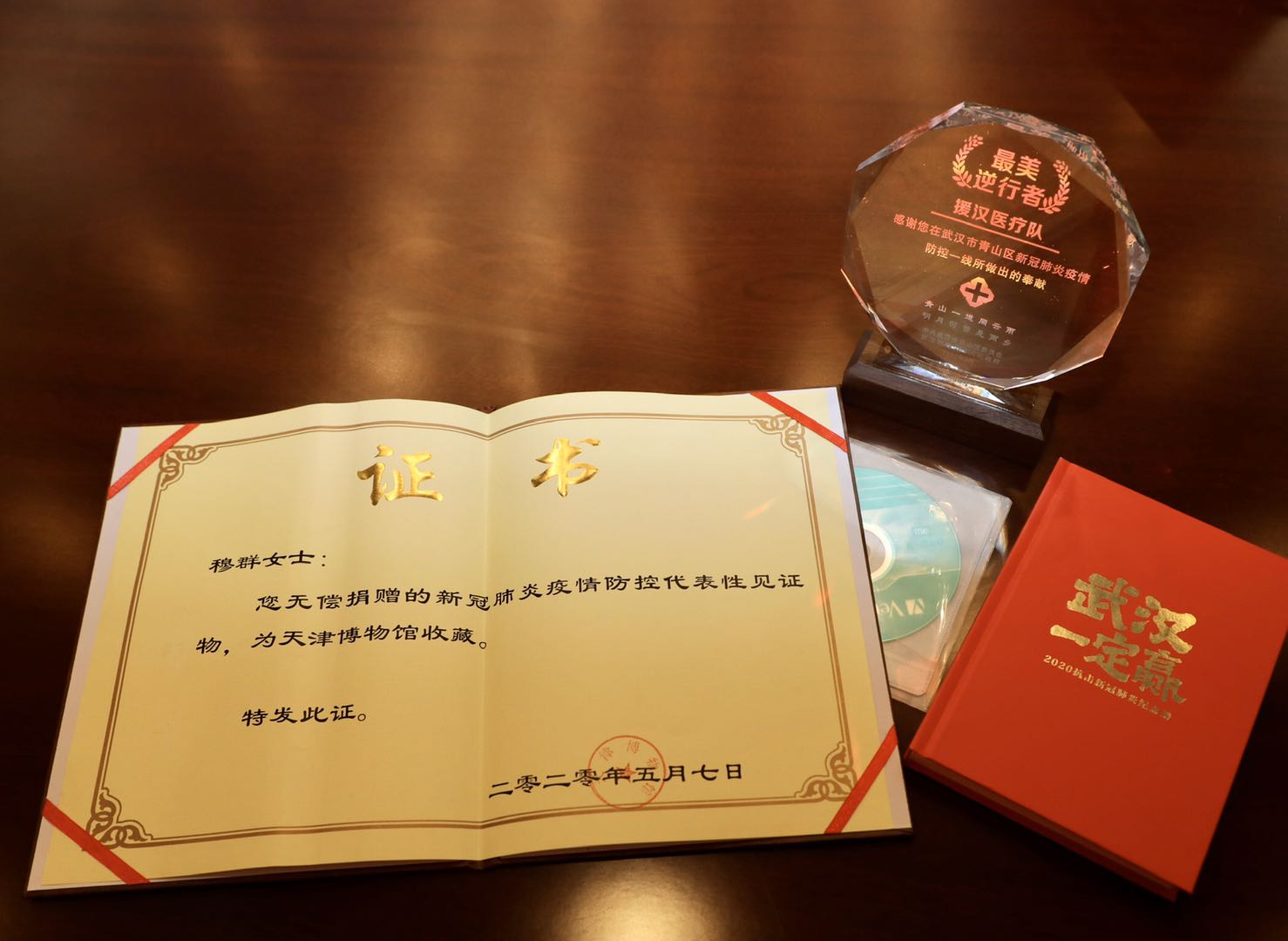 “在湖北抗疫的52天是我人生中最有意义的时刻,也是我终身难忘的记忆。这些物品是2020年全国人民在党的领导下,万众一心、齐心协力打赢新冠肺炎疫情阻击战的见证物”,穆群表示,“将这些见证物捐献给博物馆,让更多的人看到比放在我个人手里更加有意义,它们见证了天津人民不屈不挠的斗争精神,彰显出我们中华民族是个伟大的民族,中国人民是伟大的人民!”