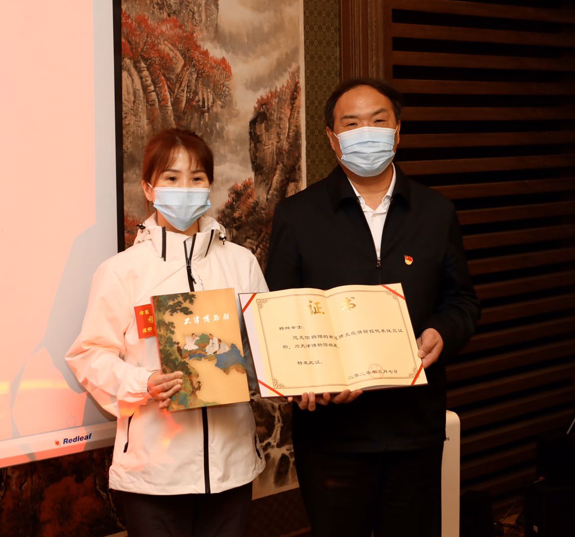 “这是我的抗疫战地日记,这是我当时往返湖北的机票,因为时间紧迫,机票上的名字都是手写的……” 5月7日上午,曾赴湖北一线抗击新冠肺炎疫情的穆群女士将五件(套)抗疫见证物捐赠给了天津博物馆。张玲副书记代表天津博物馆接受捐赠,党委书记、馆长陈卓为穆群女士颁发捐赠证书。现场记者纷纷按下快门,留住这一珍贵的时刻。