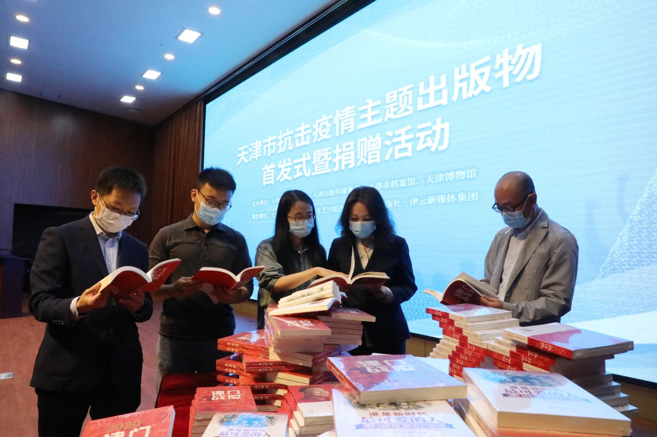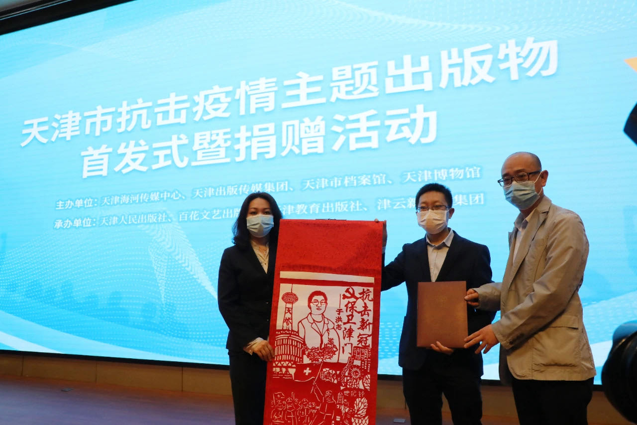 5月15日上午,天津博物馆报告厅中举行了一场别开生面的出版物首发式和捐赠活动。在市委宣传部指导下,天津出版传媒集团所属的天津人民出版社、百花文艺出版社、天津教育出版社和天津海河传媒中心分别向市卫健委、市教委及医护人员、大学生代表等赠送《2020津门战“疫”纪实》《谁是新时代最可爱的人——津门战“疫”的平凡英雄》《大医张伯礼——抗“疫”一线报道纪实》等图书和大型六集专题片《大考》、“天津战‘疫’中的感动”等光盘。同时向天津市档案馆、天津博物馆捐赠了图书和光盘。