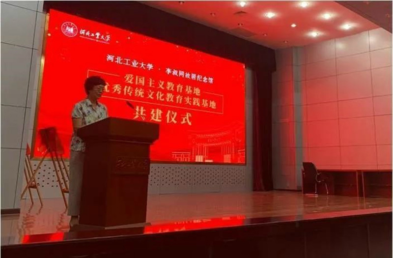 天津博物馆党委副书记张玲、河北工业大学党委副书记贺立军分别为大会致辞,并为“爱国主义教育基地、优秀传统文化教育实践基地”揭牌。