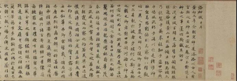 宋末元初书法家赵孟頫创作的行书书法作品《洛神赋 》是天津博物馆的重量级藏品,赵孟頫曾多次书《洛神赋》,传世版本也较多,但其中保存完整的精品共两幅,分别收藏于北京故宫博物院和天津博物馆。