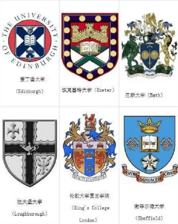 从左往右分别是:第一行英格兰王国、爱尔兰王国、苏格兰王国、法兰西王国、意大利的美第奇家族、萨伏伊公国、尼德兰的奥兰治-拿骚家族。