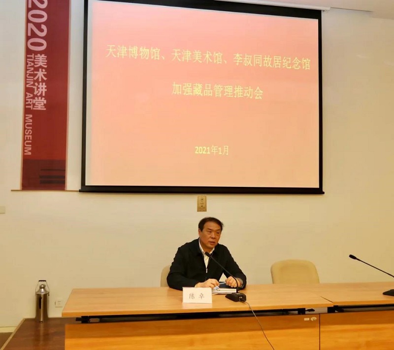 天津博物馆党委书记、馆长陈卓对三馆藏品管理工作进行了全面总结,他指出“天津博物馆、天津美术馆、李叔同(故居)纪念馆三馆的藏品保管利用工作不断完善,但同时,我们在工作中也发现尚存一些不足之处,馆党委特别召开此次“推动会”,希望进一步提升天津博物馆的藏品管理工作水平。”他对与会人员提出三点要求,一是尽快解决历史遗留问题,二是要加强业务学习与提升,三是对下一步工作进行部署。