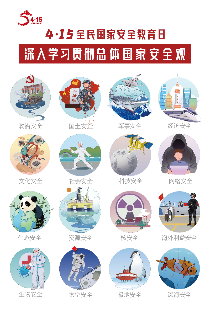 4月15日是第六个全民国家安全教育日。自觉增强国家安全意识,坚决维护国家主权、安全和发展利益。