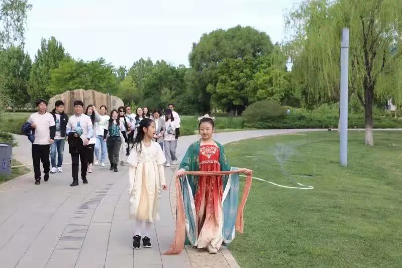 上午九时,“文物·青春——绕湖文物服装秀”开始,此活动基于天津博物馆员工日常的绕湖健身活动,并添加了“文物”“青春”元素,旨在践行习近平总书记“让文物活起来”的重要指示精神的同时充分展现青春风采。馆领导和博物馆青年员工们身着文博主题T恤临风健步、绕湖畅谈,以青春之脚步,传古老之文明。