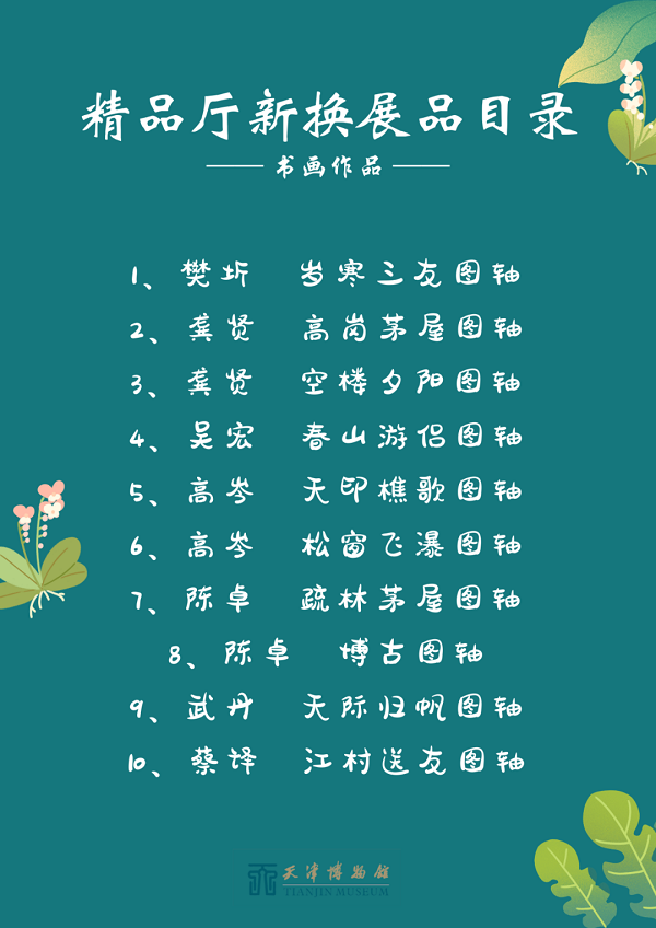 2021年6月21日,天津博物馆《耀世奇珍——馆藏文物精品陈列》书画展品进行调陈。此次换展以金陵画派为主题,共展出金陵画派作品19件套。