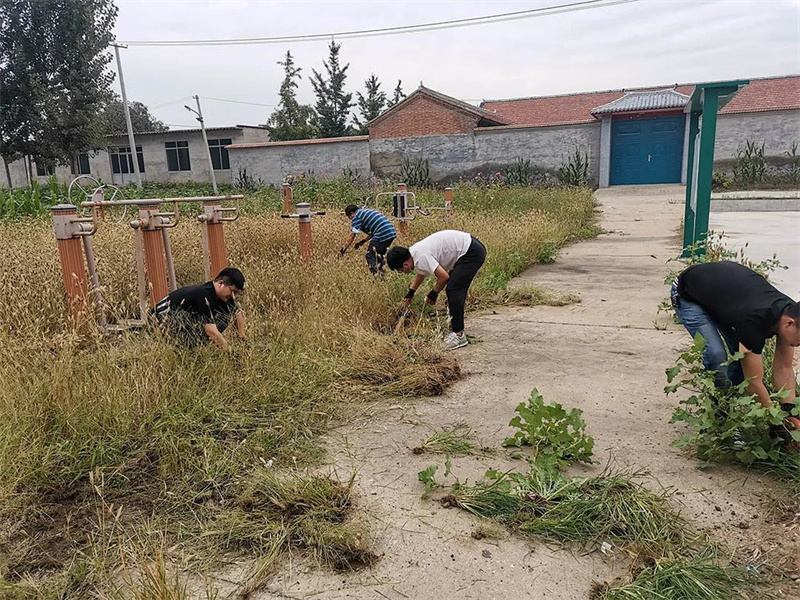 天博驻村工作队和秦庄子村的党员、群众,互相配合,共同行动,拔草、铲草、扫地以及搬运垃圾杂草,大家齐心协力为建设美丽乡村行动,汗水满面,笑容却更盛。