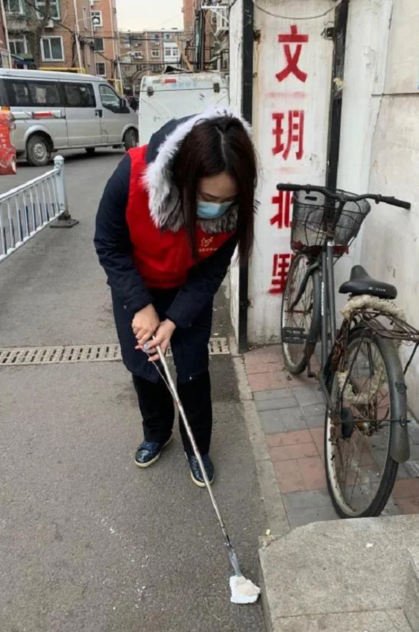 12月16日清晨,迎着朝阳,宣教党支部成员开始了友谊路街文玥里社区的第一班执勤工作。天气预报显示又一轮寒潮于16日凌晨席卷津门,八点钟的室外温度接近零度,西北风力达到5级。天气严寒并没有吓退党员们,大家仍然饱含热情地坚守在各自的工作岗位。工作内容主要包括协助居民进行垃圾分类处理、捡拾地面垃圾、指导居民将共享单车摆放在指定位置、为有需要的群众提供问询服务等。