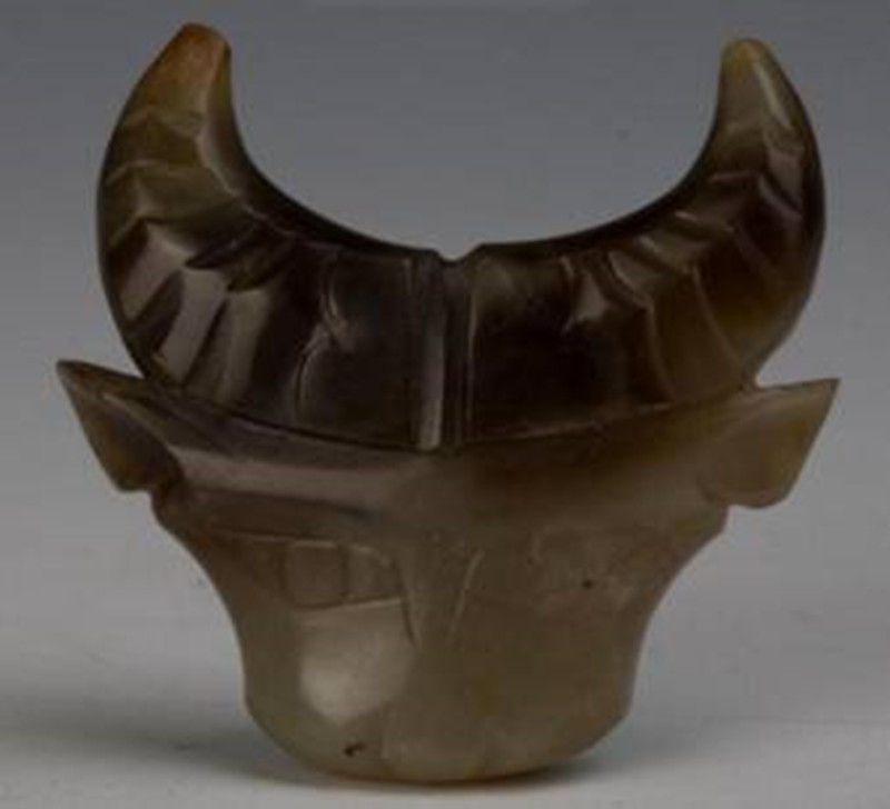 商代-青玉牛面形饰