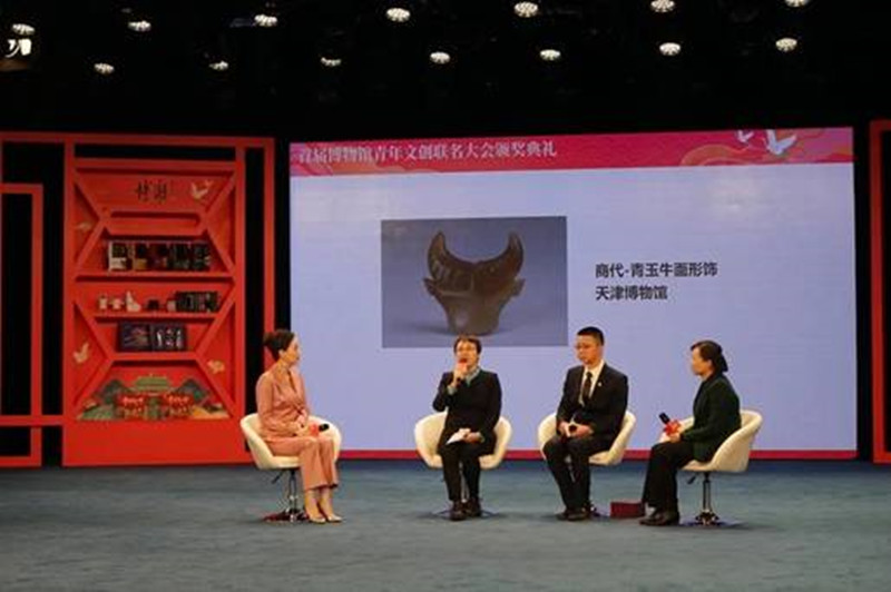 2021年阳春三月,在北京举办的“博潮”首届博物馆青年文创联名大会颁奖典礼上,天津博物馆选送的商代青玉牛面形饰以33846的高票,在603件文物种脱颖而出,位居“2021年百姓最喜爱的十件牛文物”榜首。天津博物馆党委副书记张玲现场解读这件文物的文化含义及其背后的故事。