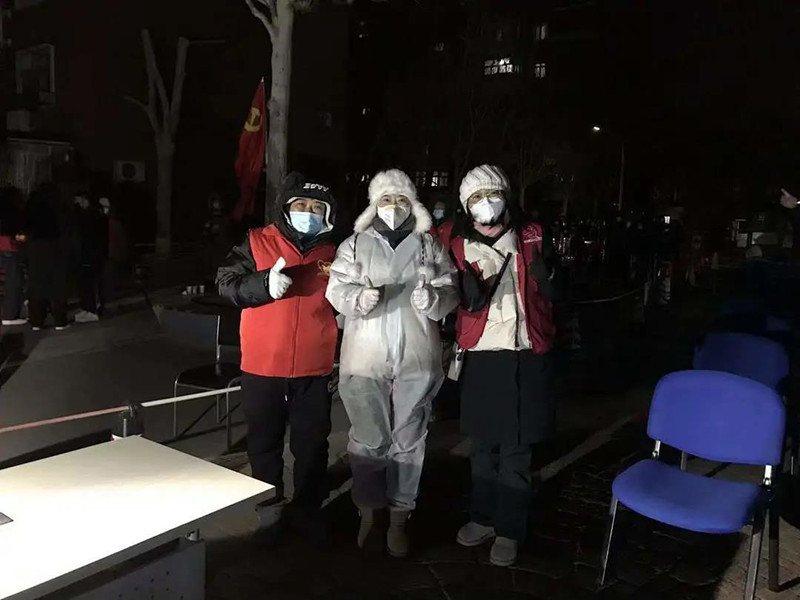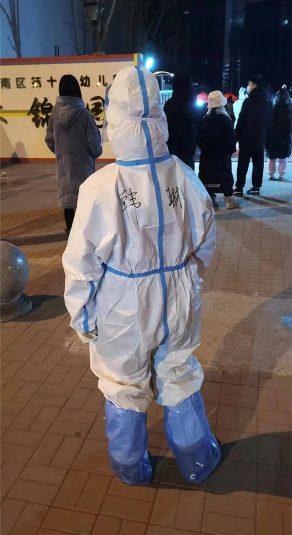 1月11日夜,在接到二筛通知后,韩琳又第一个报道社区,在核酸检测点维持秩序。温度渐降的深夜,呼出哈气形成的水柱冻在防护面罩上,韩琳依然坚守着,引导老幼居民进入绿色通道,辅助居民填写核酸预约卡。凌晨3点,接到防疫指挥部通知,暂停核酸检测,韩琳又与其他志愿者们组织居民返回社区,并耐心安抚大家的情绪。