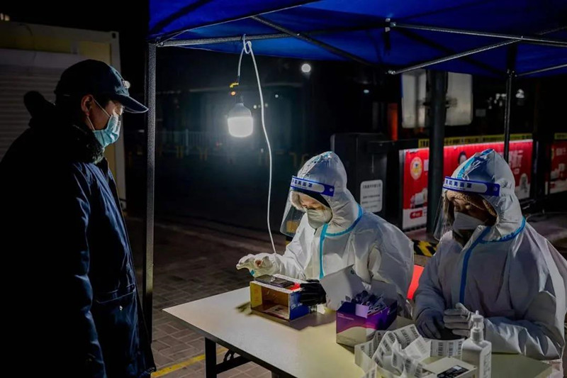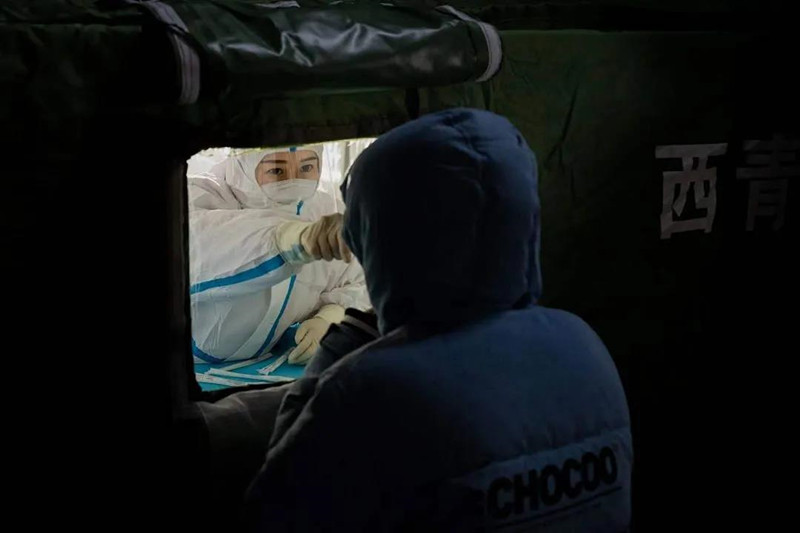 下午一点多,小区内22栋楼2000多人都完成了检测。匆匆吃口饭,又开始下午精细化的二次“扫楼”确认工作。在随后几次大筛中,贺培姗重复着这样的工作,每次都准时到达设点,细致认真地完成所有的项目和任务。然而她始终觉得自己做得太有限了。“医护人员不仅早出晚归,更要上门给老幼及隔离在家的红码居民检测。他们比我们更加辛苦。”