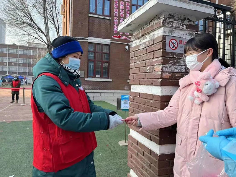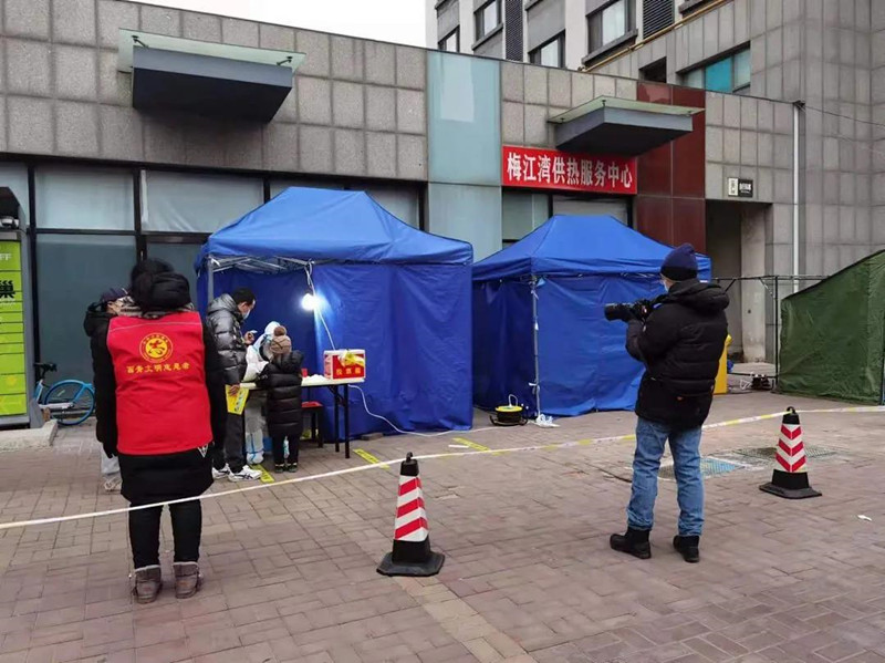 3个小时后,天气越来越冷,其他志愿者送来了暖贴,真是雪中送炭。因为有时该楼栋基本都测完而只剩下个别一两户的时候,就只留守一个人,其他人去下一栋,所以组队人员随时都有变化。有一次换新楼门时,贺培姗这组只有她自己,来不及去叫人,她二话不说,一个顶两个去开展工作,虽然刚开始有些手忙脚乱,一会登记,一会扫码,但还是很快把这一个楼门都登记清楚了。“最应该感谢的还是居民,大家都非常配合,有条不紊地听从指挥,还不时地感谢我们,大家都很有爱。”