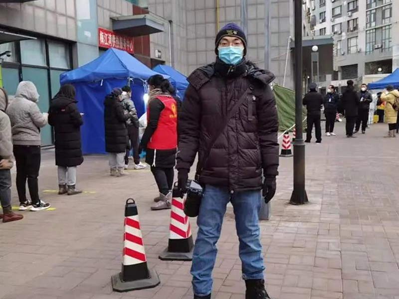 当日正值大寒节气,日出前天气很冷,由于要操作相机,出于灵活性的考虑,他只戴了一副薄手套御寒。经过几小时的拍摄,手都冻得没有了知觉。返回家中,他顾不上休息,立即打开电脑挑选照片,对必要的照片进行后期处理,最终把成片发给社区。照片拍完还不满意,他再次下楼拍摄了不少视频素材。这样不知不觉就到了中午,随着居民筛查完毕,“战地记者”一天的工作也顺利完成了。