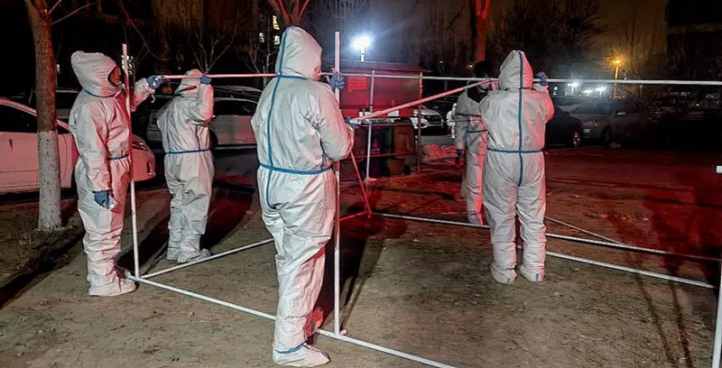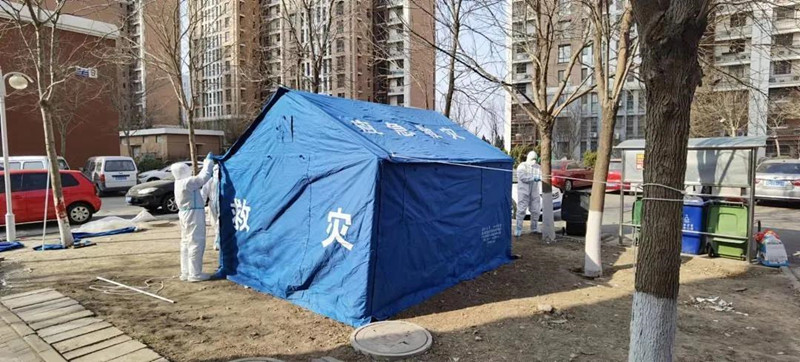 下午,全体人员在接到指令后统一前往此次被分配志愿服务的地点——津南双港镇仁和园小区。来到这里后我们先把物资交接,然后开始开会分配具体工作,由于仁和园小区属于封控小区,所以今天晚上的任务十分艰巨,我们需要在小区里搭建帐篷,然后2人一组24小时轮流值班。在简单的晚餐后,统一分组,我们和兄弟单位文化遗产保护中心的4位男同事分到一组并组建临时党支部,我们于晚上十点左右开始穿防护服然后进入小区搭建帐篷,需要搭建3个帐篷,由于都是第一次搭帐篷都不熟悉,为了快速高效的完成工作,大家一起研究、分析、合作,最终在全体人员的努力下帐篷搭起来了!