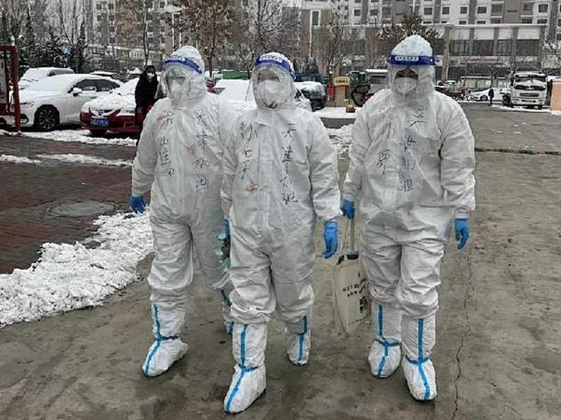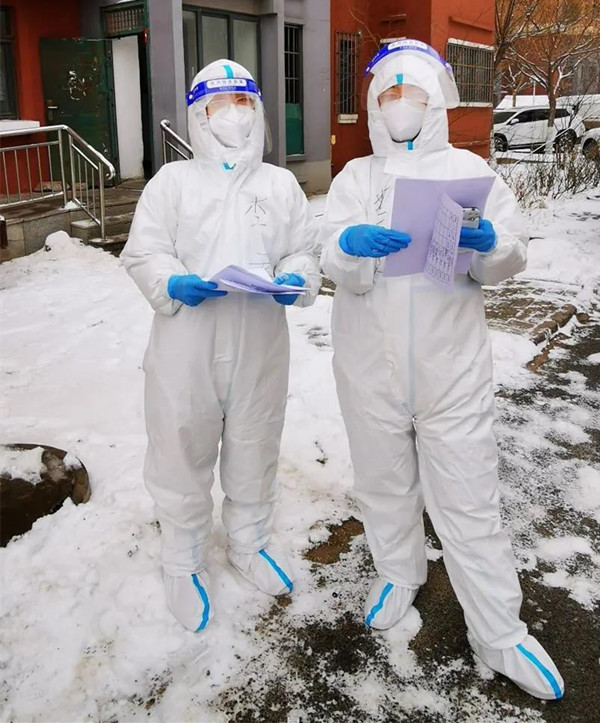 这两天,我们继续从事上门问需的工作,对负责的6栋楼将近500户居民的需求进行询问,详细记录,并进行汇总提交。1月22日,除去7、8号楼仍为封控,其余楼均改为管控,需要逐户发放出户证。为了保障居民能够及时快速拿到出户证,我们接到任务后,分为两组,迅速开展工作。由于刚下过雪,道路湿滑,穿着防护服走起路来更是沉重不便,而且室外寒冷,楼道内相对封闭比较温暖,进入楼道瞬时就汗流浃背,防护面罩上结雾流水,但是我们没有一刻停下脚步,几乎一路小跑,争取第一时间将出户证发到居民手中,做到主动、细心、耐心,主动向居民介绍出户证的使用说明,并细心对居民的疑问一一给予解答。尤其针对社区内的老年人,我们耐心的用通俗易懂的语言反复说明,确保每位居民都能了解出户证等的详细情况。同时结合从社区网格员处拿到的关于各个楼门居民需要重点关注人群的名单,我们对这些重点人群在改为管控区后遇到的实际困难等进行详细的询问记录,将工作做全做细做精。