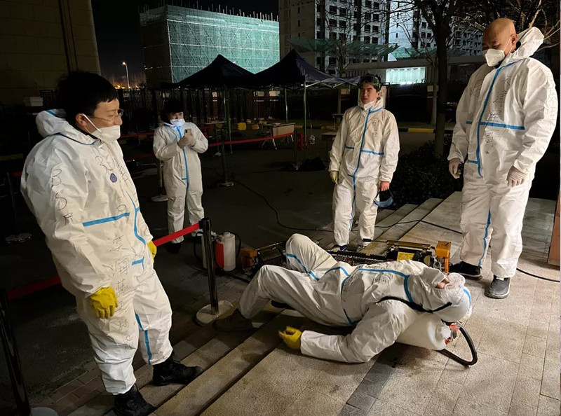 今天是封闭的第6天,社区收到了社会爱心人士捐赠的消杀器材和84消毒液,于是来自蓝天救援队的志愿者集结小分队,决定在社区内外街道进行消杀,尽最大可能保证小区安全。但消杀工作需要大量补水,又不方便入户操作,我就带着露营拉车做起了消杀后勤保障。两小区占地12万平方米,耗时6小时,补水十余次。重达60斤的水箱,让这些经历过大场面的蓝天救援队队员们也耗尽了力气,摊倒在地上。晚上回到家里,看到社区群里大家都在说,“消杀太好了,感谢蓝天救援队”,感觉一切都很值得。