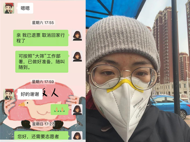 在微信群里得知天津在愿检尽检人员和发热门诊主动就诊人员中检测发现了2例新冠病毒核酸检测阳性人员,我心里有点点惴惴不安。发现病例的小区与我仅600米之隔,社区党员微信群里一直在闪着消息,在跟妈妈通了电话后,我退了回家的机票,加入了志愿服务队伍。