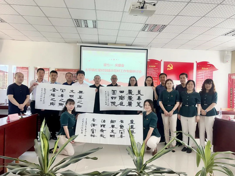 党日活动中,召开了红星村创建乡村振兴示范村“建设文化艺术村镇”工作专题研讨会。会上,与会的各位领导、专家和学者纷纷就建设艺术村镇项目、筹备红星村美术展览馆建言献策。
