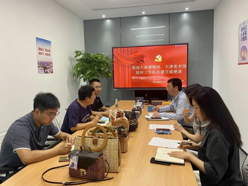 驻村工作队带着柳编文创包包和天津万象城交流合作事宜