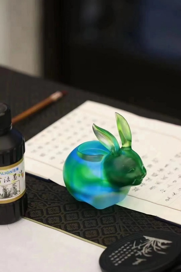琉璃兔子镇纸稳固不摇晃,也可用作笔架,兼顾了美学与实用,诠释美好的轻奢生活,给家居陈设带来大方又不失温暖的氛围感。兔子整体造型由头、身、尾三个不同大小的圆形组合而成,寓意生活美满、家人团圆、兴旺发达的美好意愿。