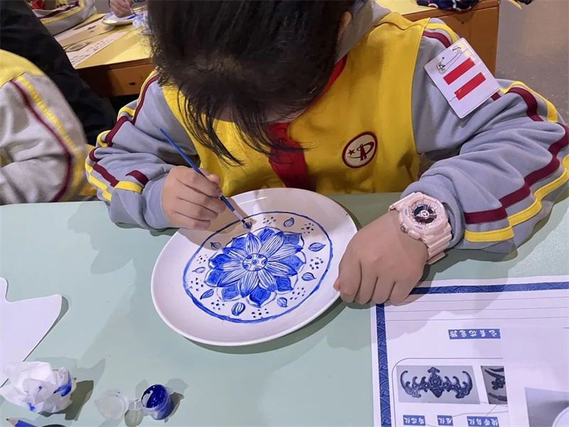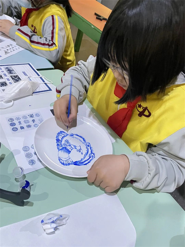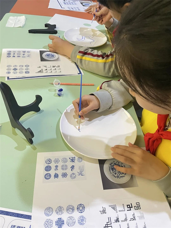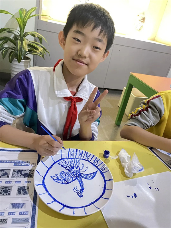 最后,学生们还饶有兴趣地参与了青花纹饰的制作,亲身体验瓷盘的绘制,体会到了古代工匠的精湛技艺,感受到了青花瓷的艺术之美。