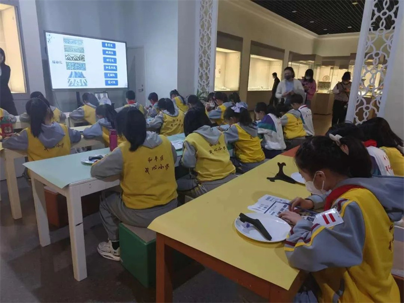 3月29日,天津博物馆迎来了和平区中心小学的学生,这是自3月18日活动开启后,“板凳上的博物馆”迎来的第二批小学员。