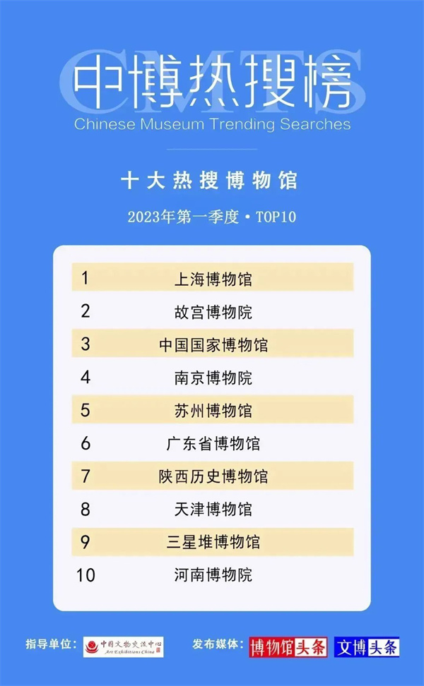 中国博物馆热搜榜是中国博物馆领域首个综合性热度推介榜单,在中国文物交流中心的指导、支持下,由博物馆头条通过专业品牌监测系统作为大数据分析支撑,长期对全国备案博物馆举办公开展览的传播情况和公众反馈信息进行采集、统计和发布。