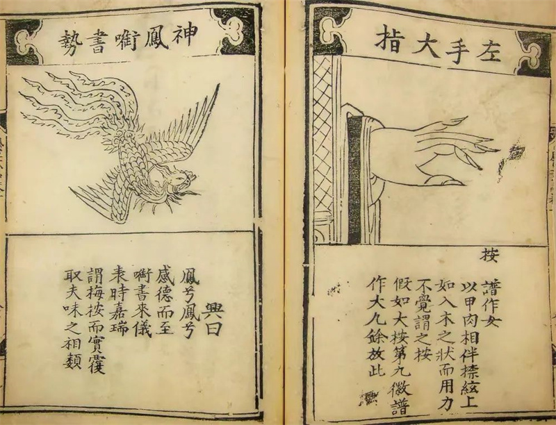 图丨《风宣玄品》(明嘉靖徽藩刻本)中记载的古琴指法