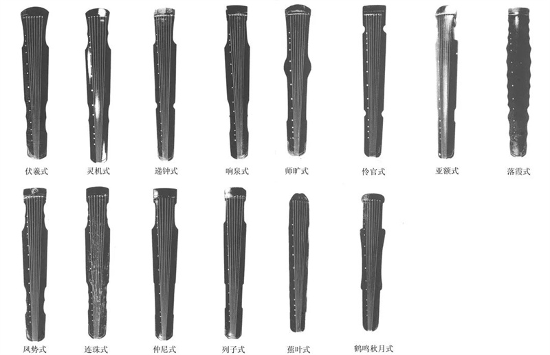 古琴的形制有三种起源:圣人造琴(仲尼式、神农式、伏羲式等);文人造琴(落霞式、蕉叶式、连珠式等);帝王造琴(如襄王琴、潞王琴等)。