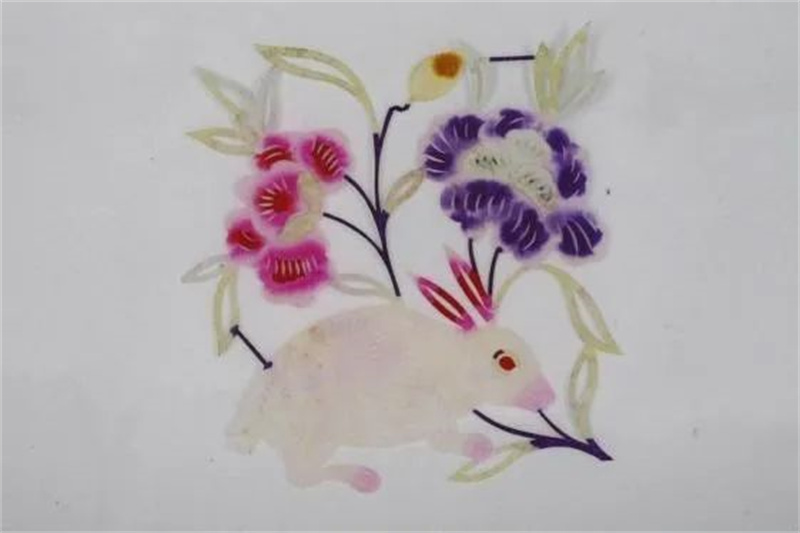 图丨现代 蔚县白兔花卉彩色窗花