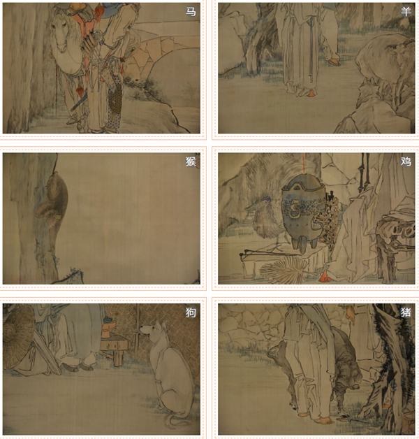 图丨清 钱慧安十二生肖条屏(局部)
