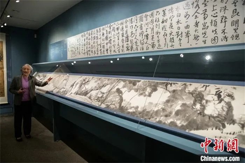 站在清代画家朱耷长近13米的《河上花图》手卷前,海蔚蓝说,这幅画是此次展览的灵魂,中国花鸟画的骨气和精神都在这幅画里。八大山人是中国绘画史上杰出的大师,他把中国花鸟画的写意达到了一个无法企及的高度。这幅画已经体现了观念艺术的理念,实际上他用这幅画说明了他一生的历程。