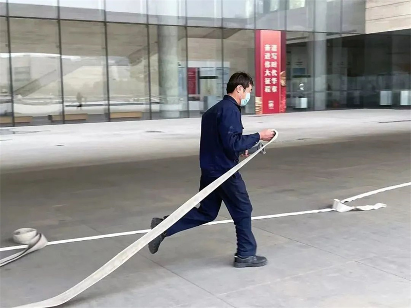 为全面推动消防安全大培训、大宣传、大演练工作,推进新时代文明实践活动落地生根,贯彻落实天津博物馆党委“安全工作专题会议”精神,抓实抓细文物和场馆安全工作,在演练开始前,组织微型消防站人员进行了100米负重跑,单人两盘水带连接,原地着装加佩戴空气呼吸器,4×100米水枪接力,水枪打靶比武科目训练。