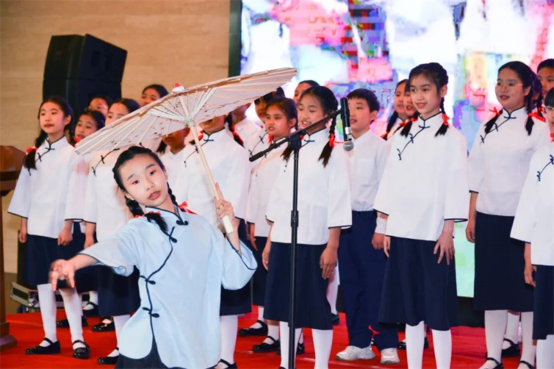 天津市红桥区文昌宫民族小学少年合唱团演唱《文昌校歌》《春游》《送别》